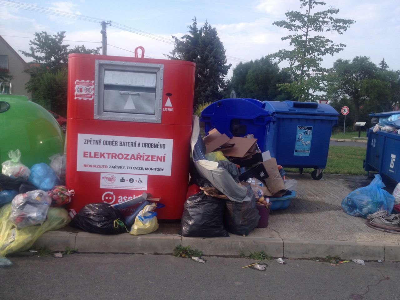 Odkládání mimo kontejnery je zakázano pod pokutou 30.000,-